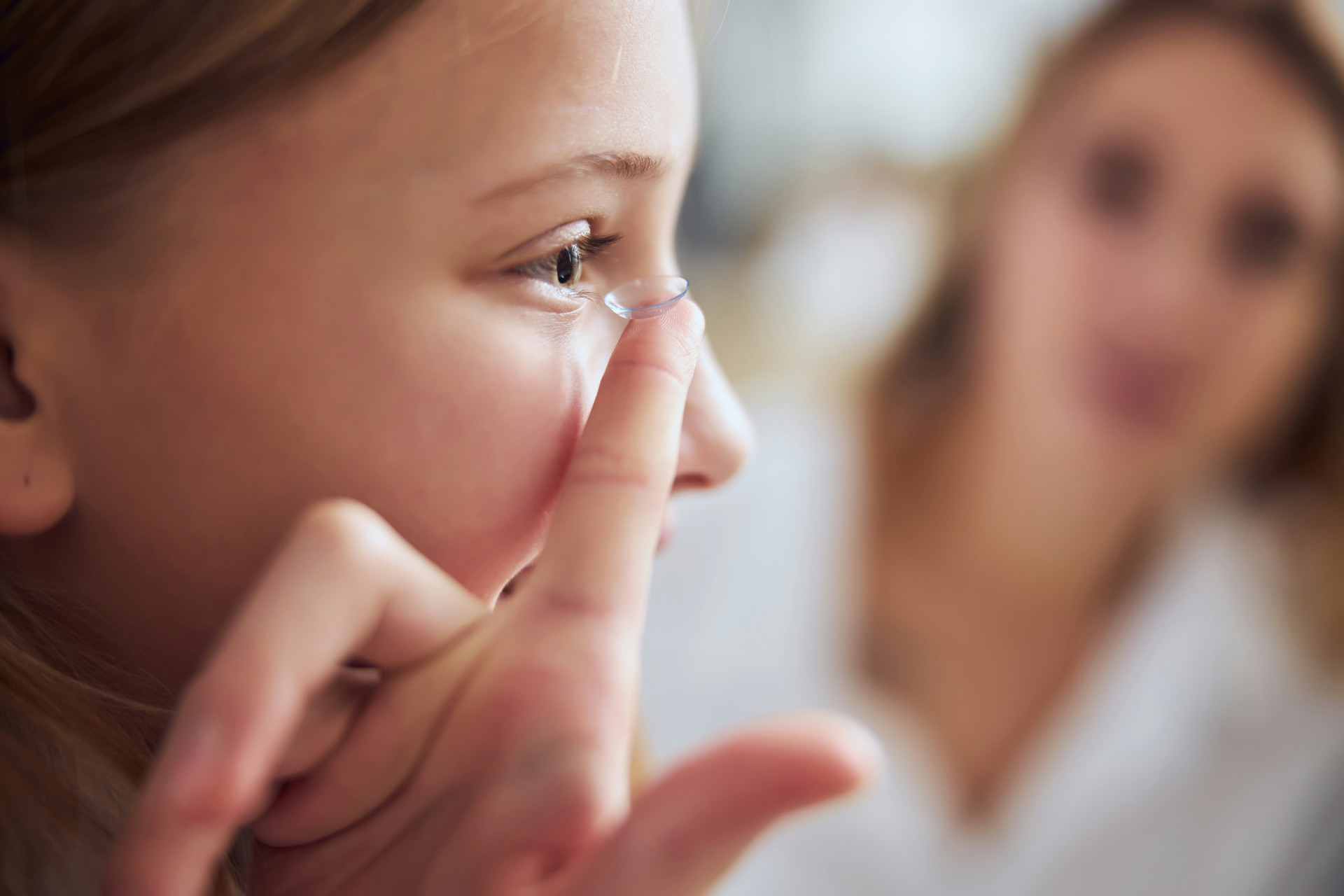 Linsene settes inn ved å plassere dem på pekefingeren og forsiktig sette dem inn i øyet, deretter justere ved å blunke slik at de sitter riktig på hornhinnen.